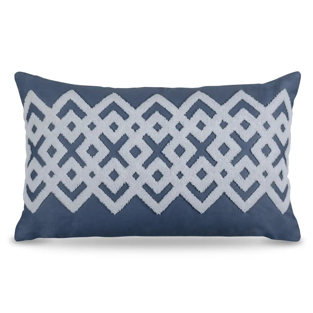 Add some personality to your bed or sofa. A crisp cotton blue background embellished with textured white to form a vibrant pattern on this cushion/ pillow.  This pillow will add an instant splash of interest to your room and is easy to mix and match with other pillows or bedding.