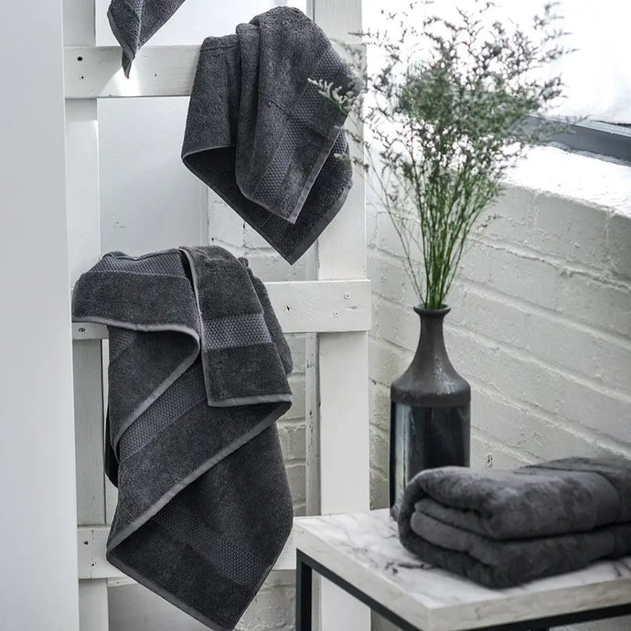 Every bathroom needs a set of these plush hand towels. For the guest, for yourself, for the kitchen or bath. Perfectly sized not too large, not too small. Highly absorbent, combed cotton ensures maximum smooth feel and rich texture. It is family friendly, featuring zero chemical processing, to ensure safety and quality for you and the environment. The contemporary slate grey color coordinates well with any decor. It's luxury you can feel, touch and enjoy for years.